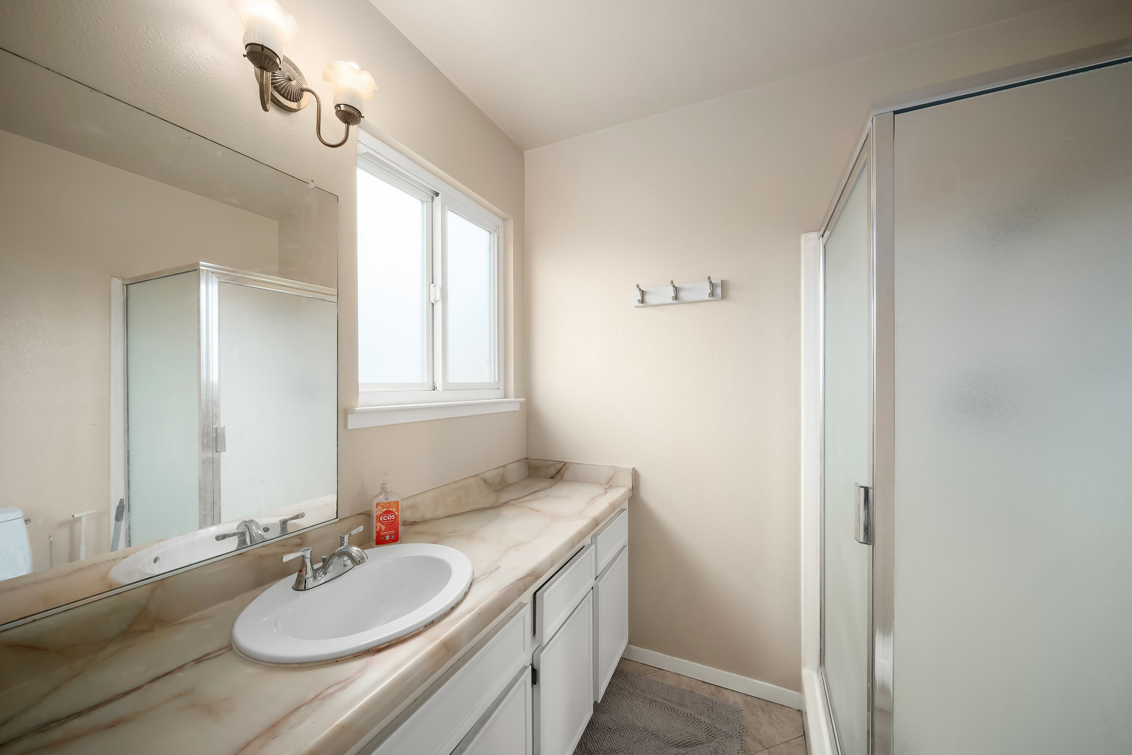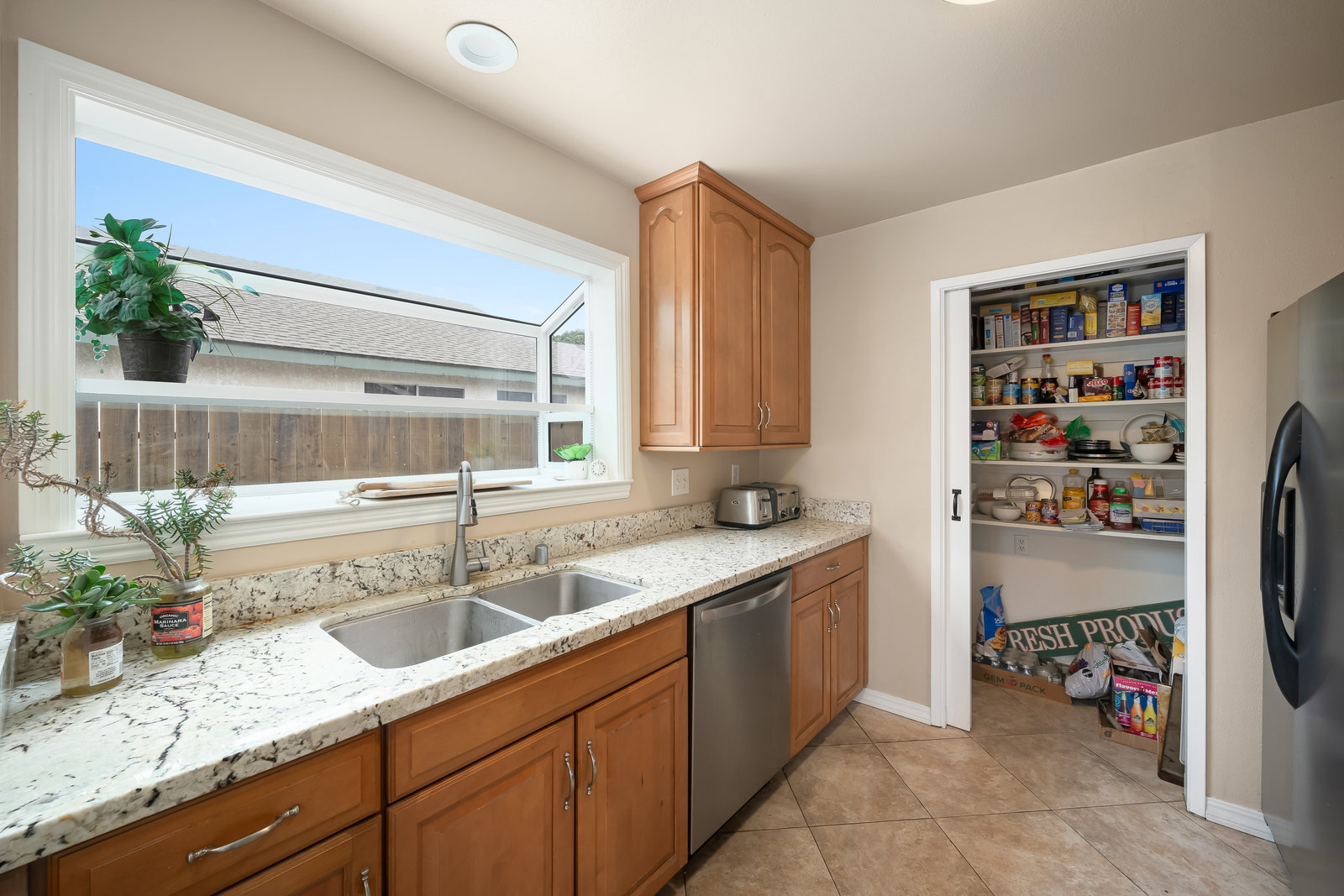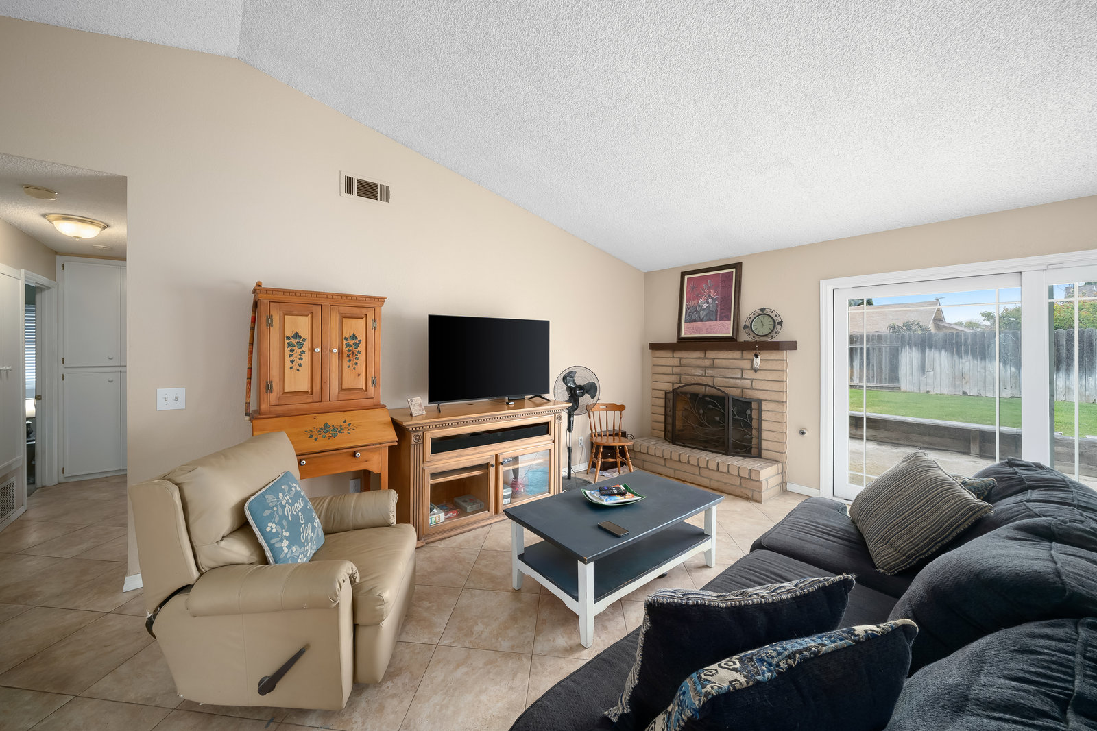 Single-Level Comfort with a Spacious Backyard & Updated Kitchen! With convenient access to US 101, schools, shopping, and dining, this single-level, three-bedroom, two-bathroom home in an established Santa Maria neighborhood offers a functional floor plan, spacious outdoor living, and key updates making it ideal for easy, everyday living. Step into the comfortable living room, where cathedral ceilings, a cozy fireplace with a brick hearth and wood mantel, and 18" tile flooring create a welcoming, light-filled space to relax or entertain. Off the entry, a bonus room with laminate flooring offers flexible use perfect as a home office, study, or fitness space. The renovated kitchen is the heart of the home, featuring granite slab countertops, recently updated stainless steel appliances (refrigerator included), abundant cabinet storage, a pantry, and a sunny garden window. The adjacent dining room, defined by a stylish hanging light fixture, is ideal for casual meals or dinner with friends. The primary suite provides a private retreat with its own en-suite bathroom, while two additional bedrooms, located near the full secondary bathroom, are perfect for family, guests, or additional workspace. Enjoy the Central Coast’s mild climate year-round with versatile outdoor living spaces. The backyard is built for gathering, featuring an oak pit grill, expansive lawn, and a concrete patio with built-in bench seating-perfect for weekend BBQs or unwinding in the evenings. Out front, a large yard with a shady tree adds curb appeal and offers another peaceful space to relax or garden. Additional highlights include a two-car garage with built-in storage cabinets and Milgard vinyl windows. This well-located home is a great opportunity to enjoy comfort, convenience, and classic Central Coast living.